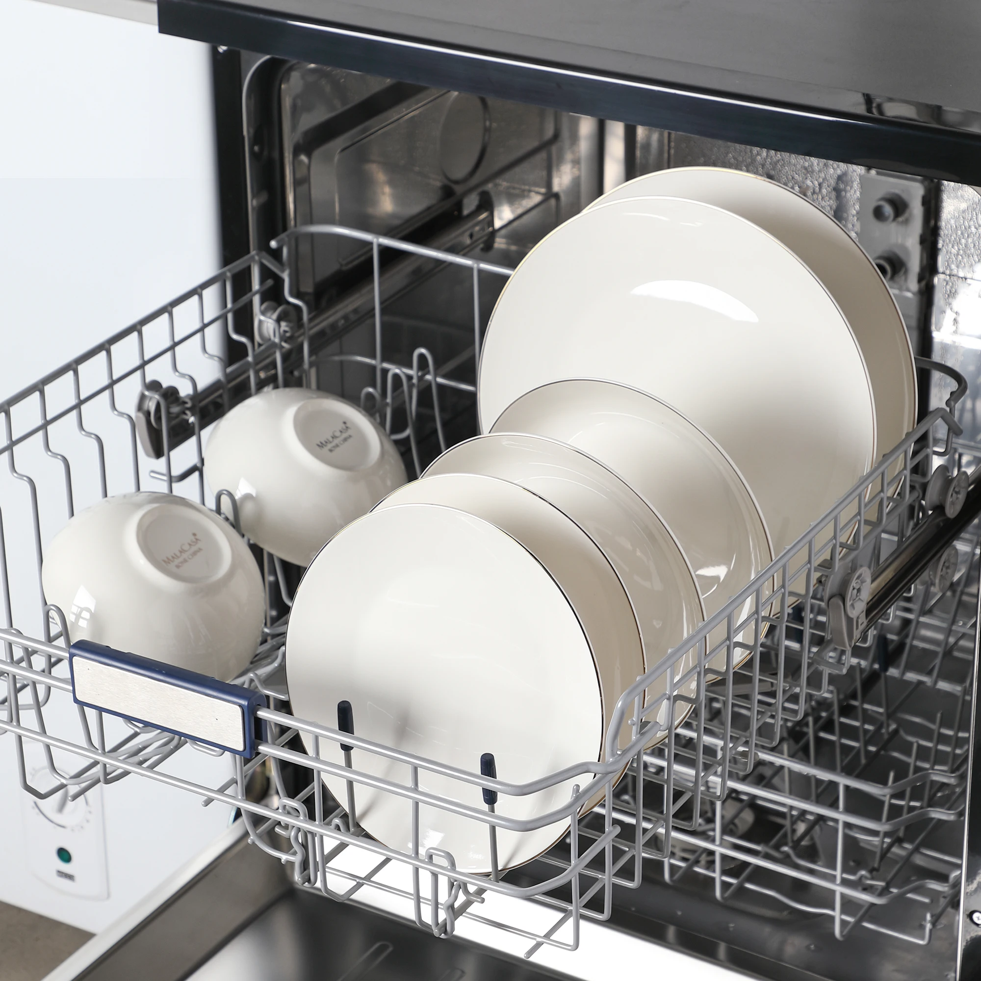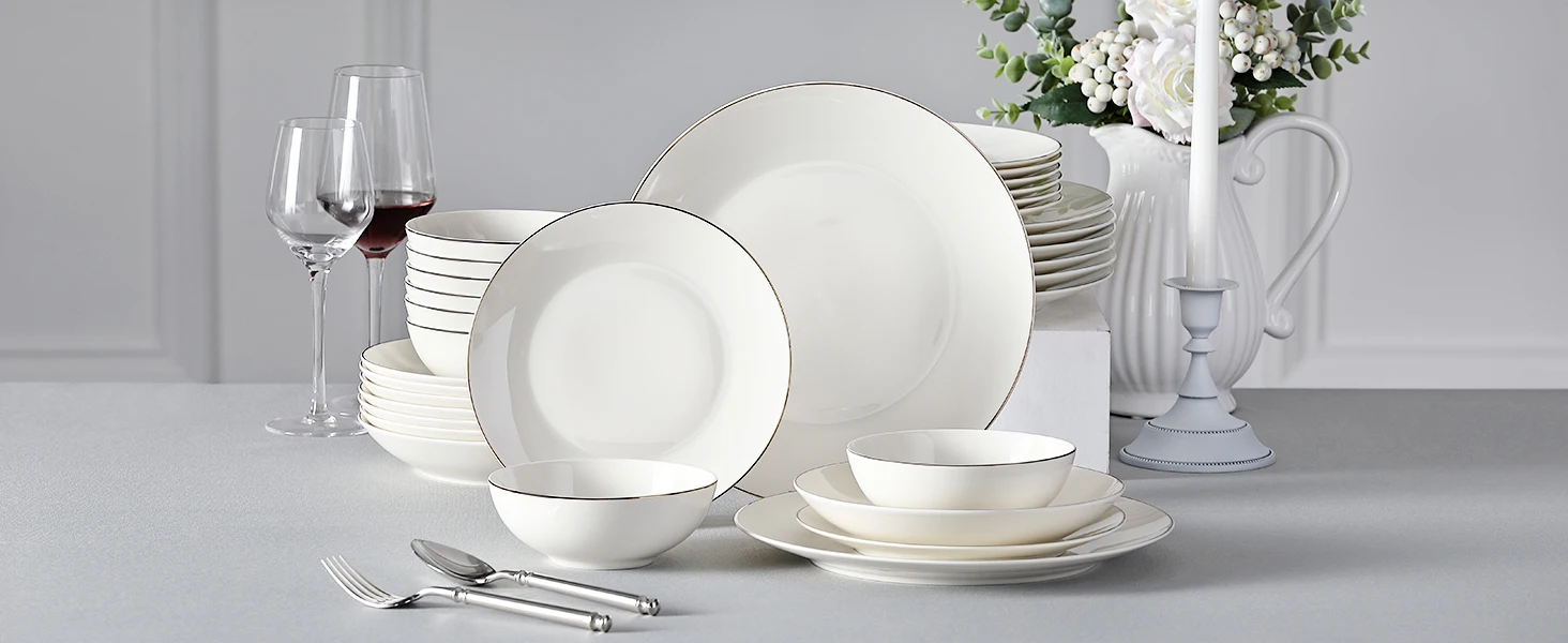 ● MALACASA dinner service sets are made of ivory white porcelain, FDA certified lead and cadmium free for everyday use. With classic square shape, making the dining table beautiful and elegant.