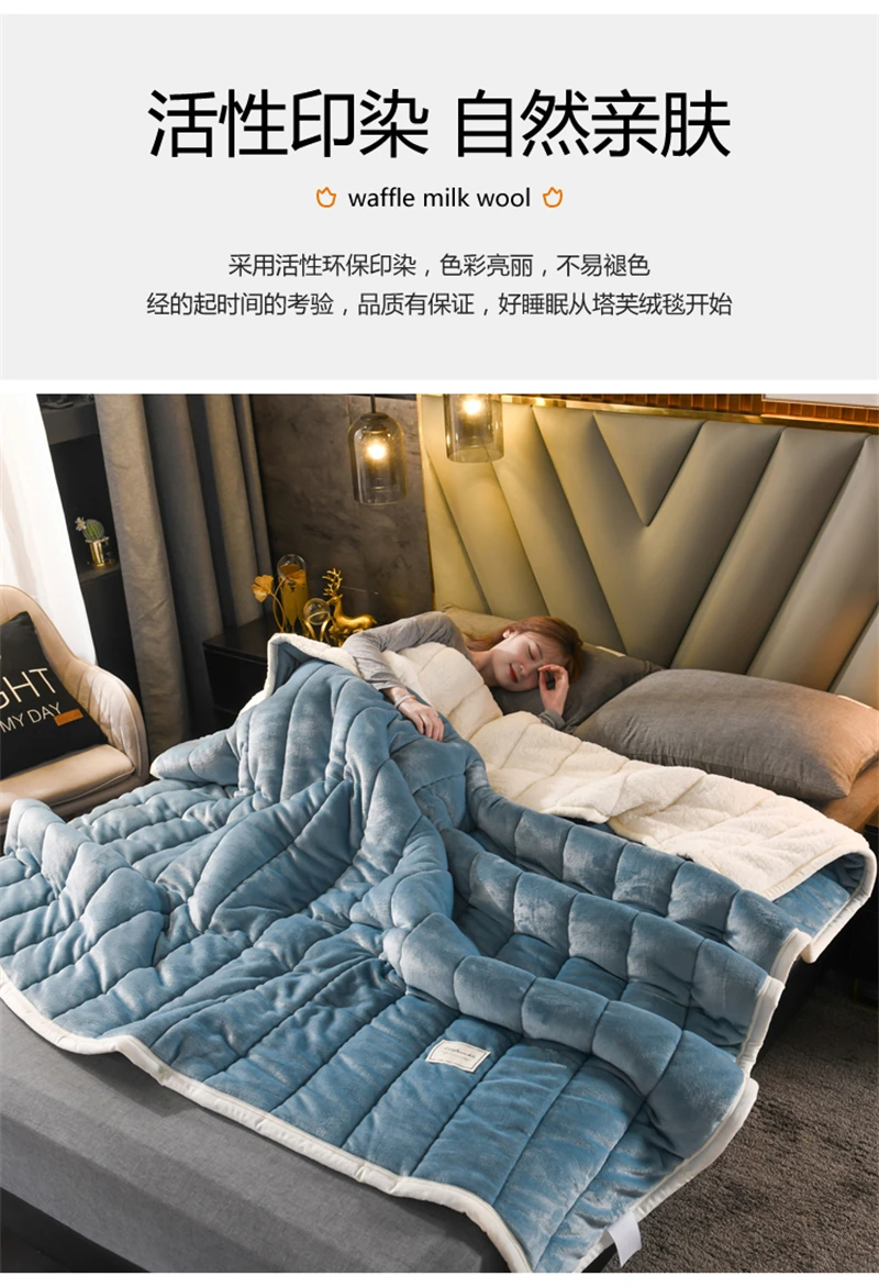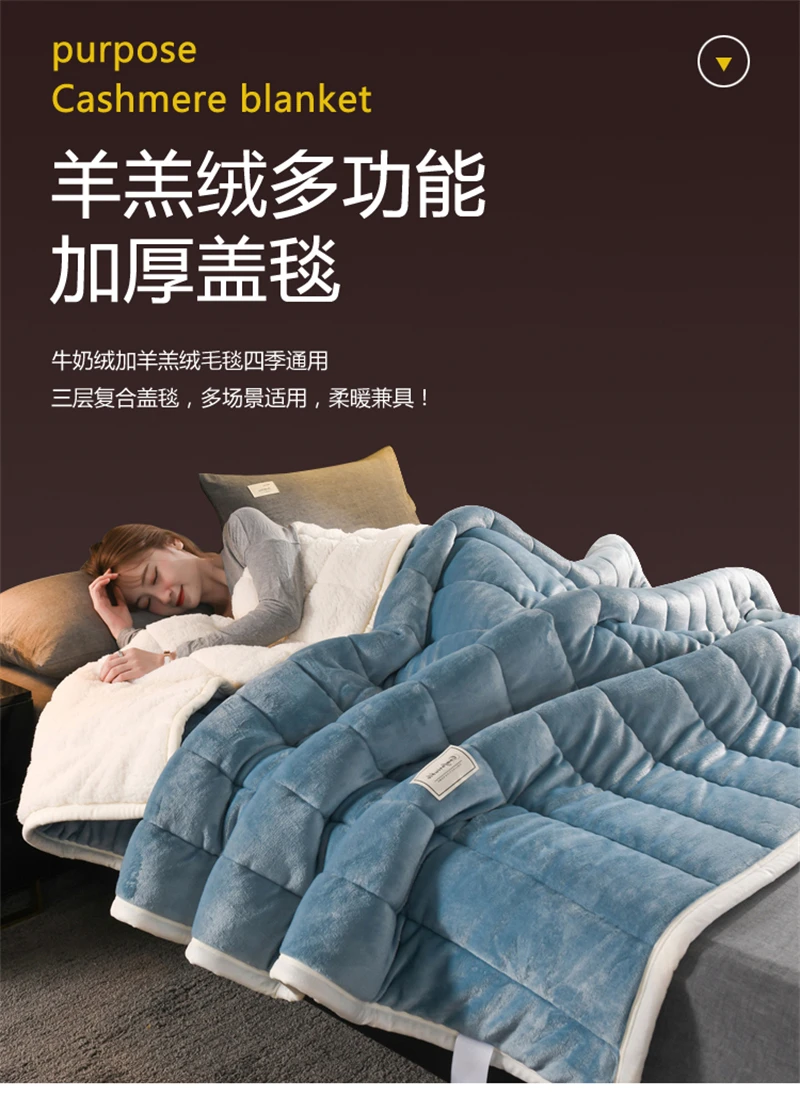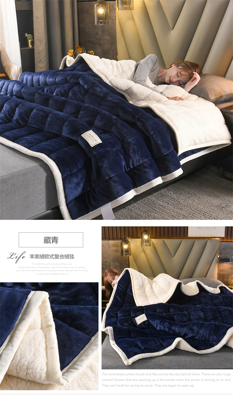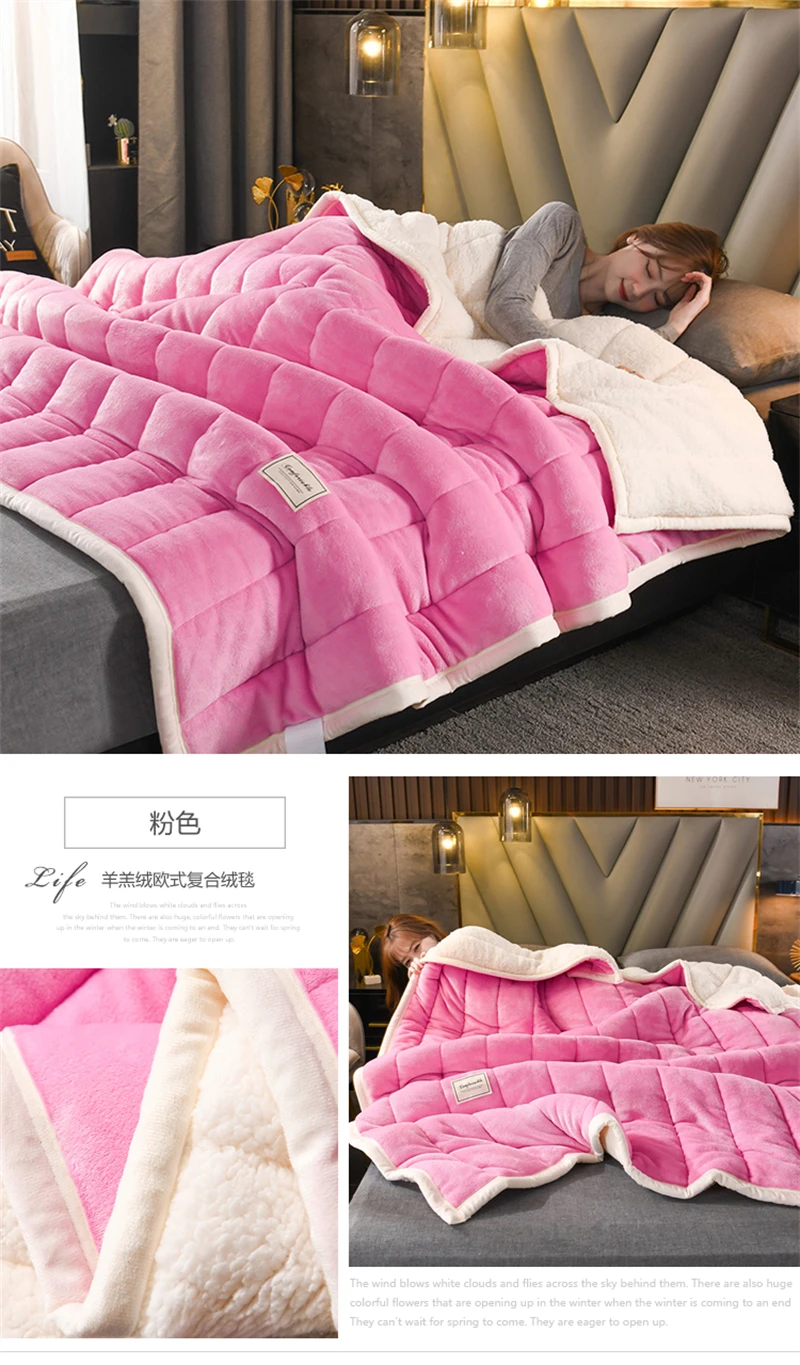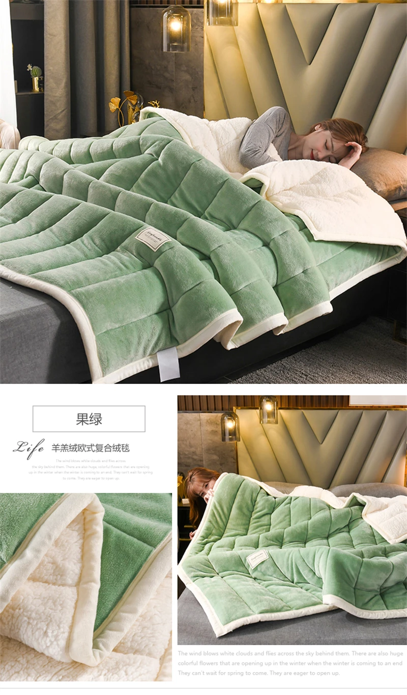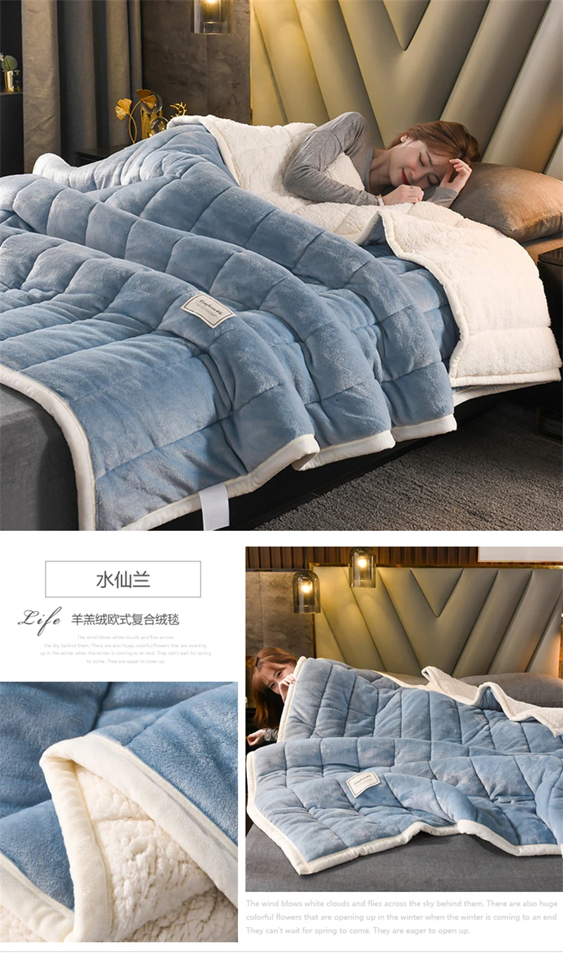 New Flannel Fleece Autumn Winter Warm Blanket 3 Layers Thicken Imitation Lambswool Blankets for Bed Quilt Soft Warmth Comforter
