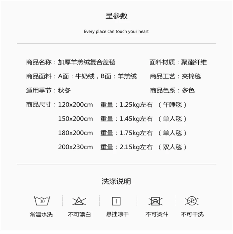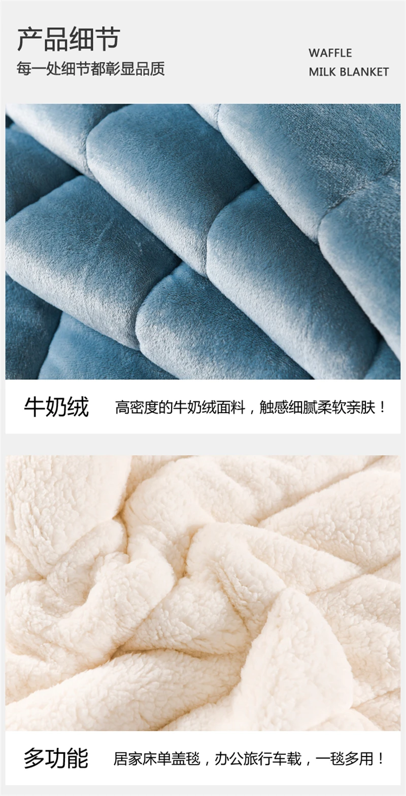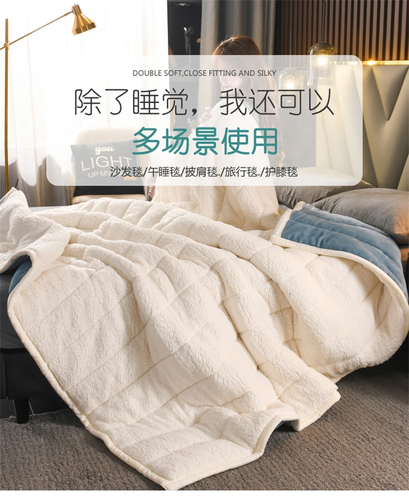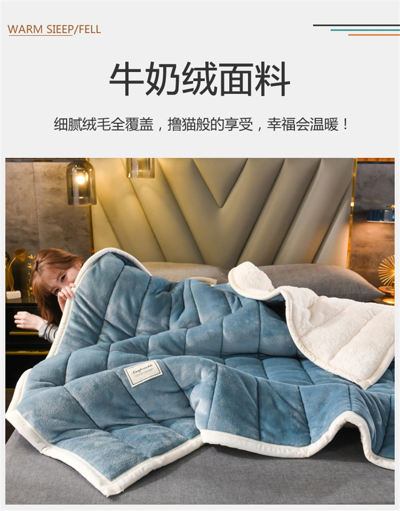 Directions: Three-Layer thicked magic lamb Coral fleece blanket , can be used for Autumn Winter, bed sheet, winter quilt, sofa blanket, carpet and other purposes, hand washing and machine washing, fluff fine, bedding dual-purpose, home good products