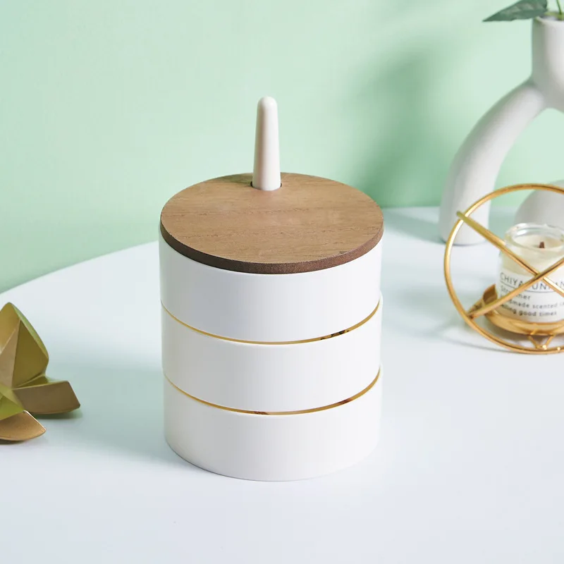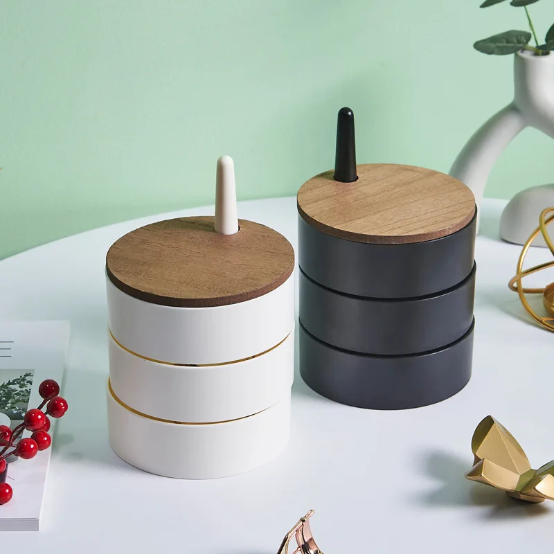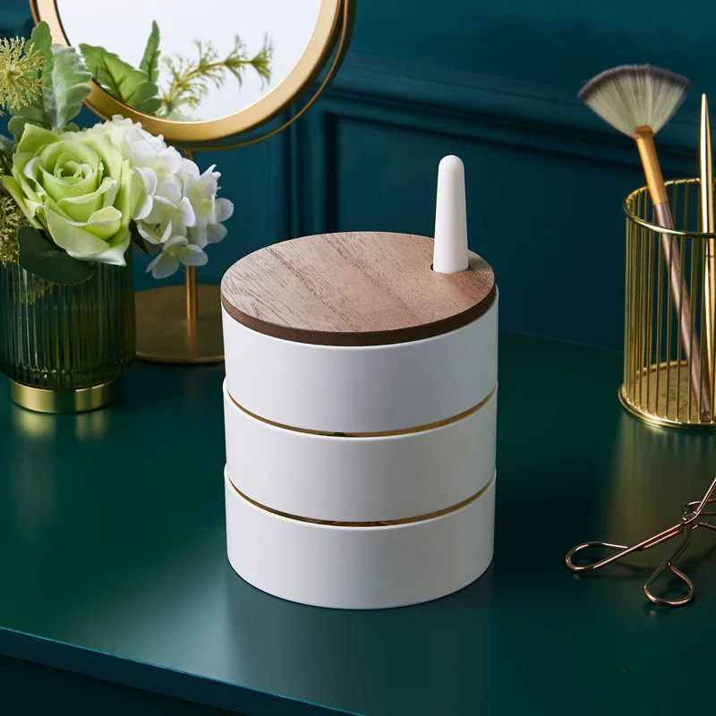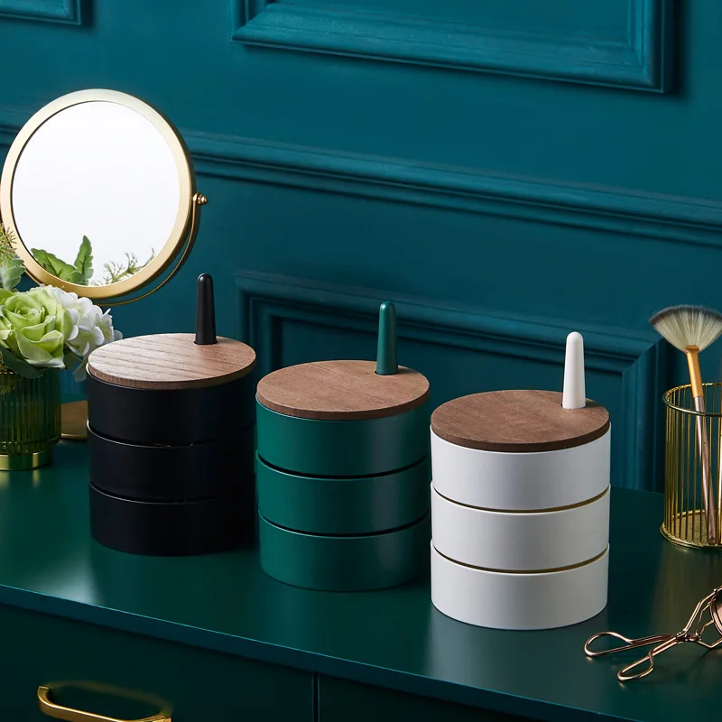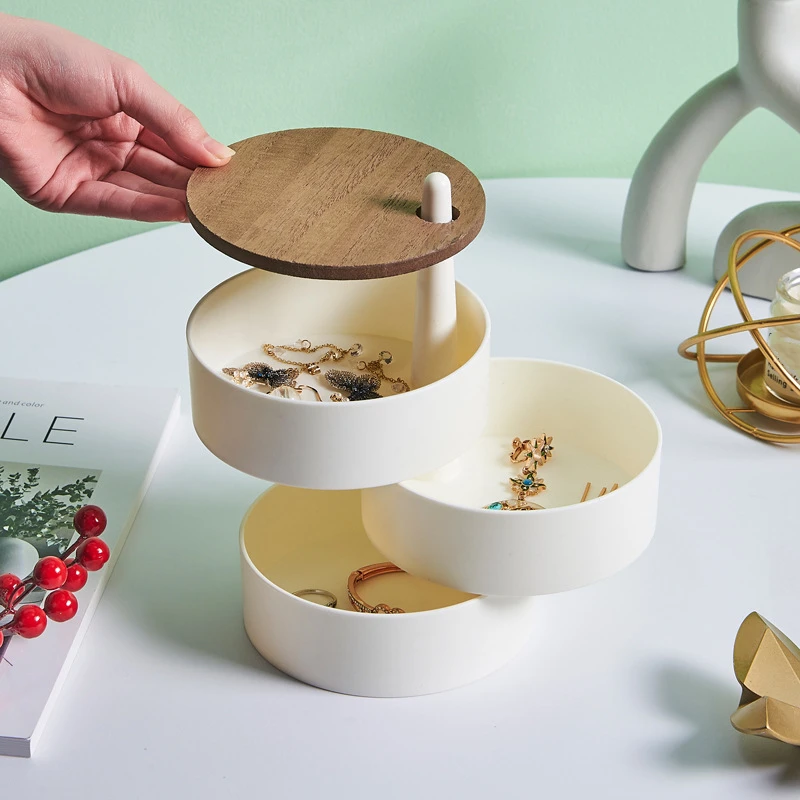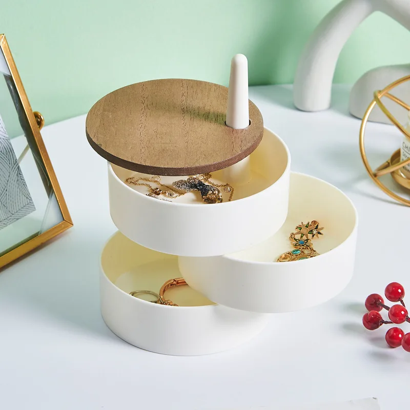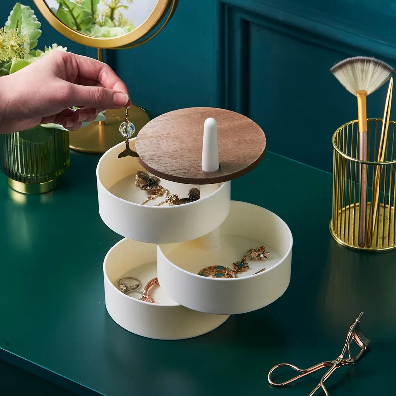 New Jewelry Organizer Wooden Cover Storage Box Exquisite Portable Rotating Jewelry Box Earrings Necklace Display Holder Gifts