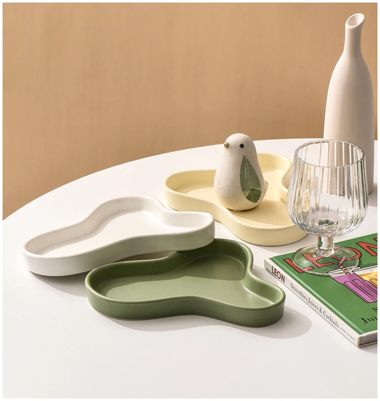 Nordic Irregular Ceramic Tray Kitchen Items Cake Stand Coffee Table Tray Dessert Aromatherapy Jewelry Storage Trays Decorative