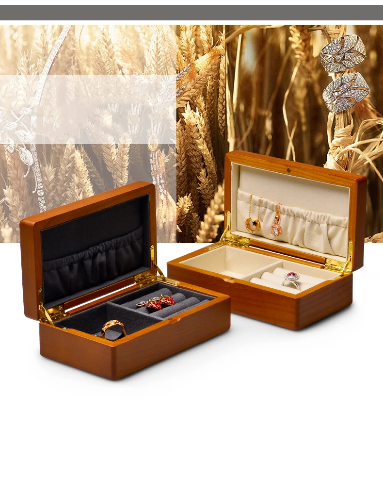 Oirlv Wooden Jewelry Organizer Solid Wood Storage Box With Upper Lower Layers Wooden Ring Earrings Jewelry Storage Box Organizer